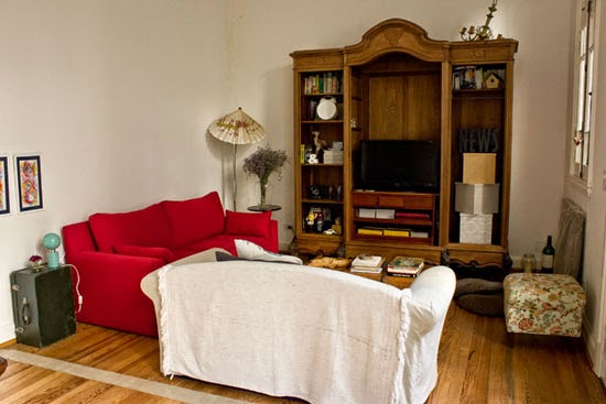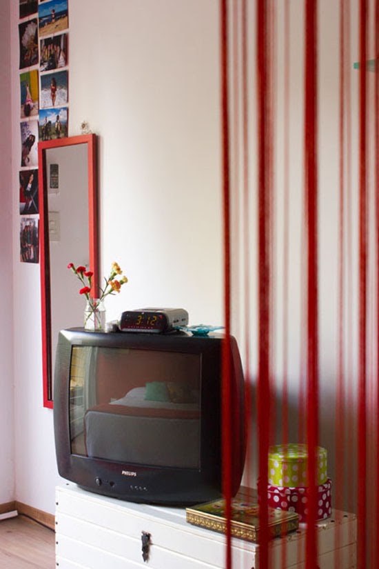 E esse guarda roupa transformado em rack? Não sei se eu teria, porque prefiro algo que apoie a televisão sem ocupar tanta parede. Mas não há como negar que é uma ideia super inusitada!