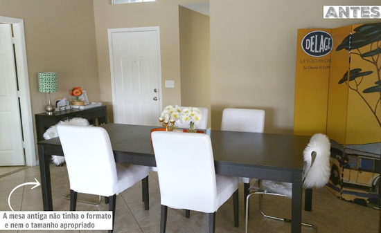 Mas aqui, como gostamos de um antes e depois, para ficar com didático como podemos mudar nossas casas a partir de dicas retiradas de makeovers alheios, separei só o antes e depois da sala de jantar, ao invés de mostrar tudo que ela já repaginou, até porque isso vocês podem fazer direto na fonte, certo?